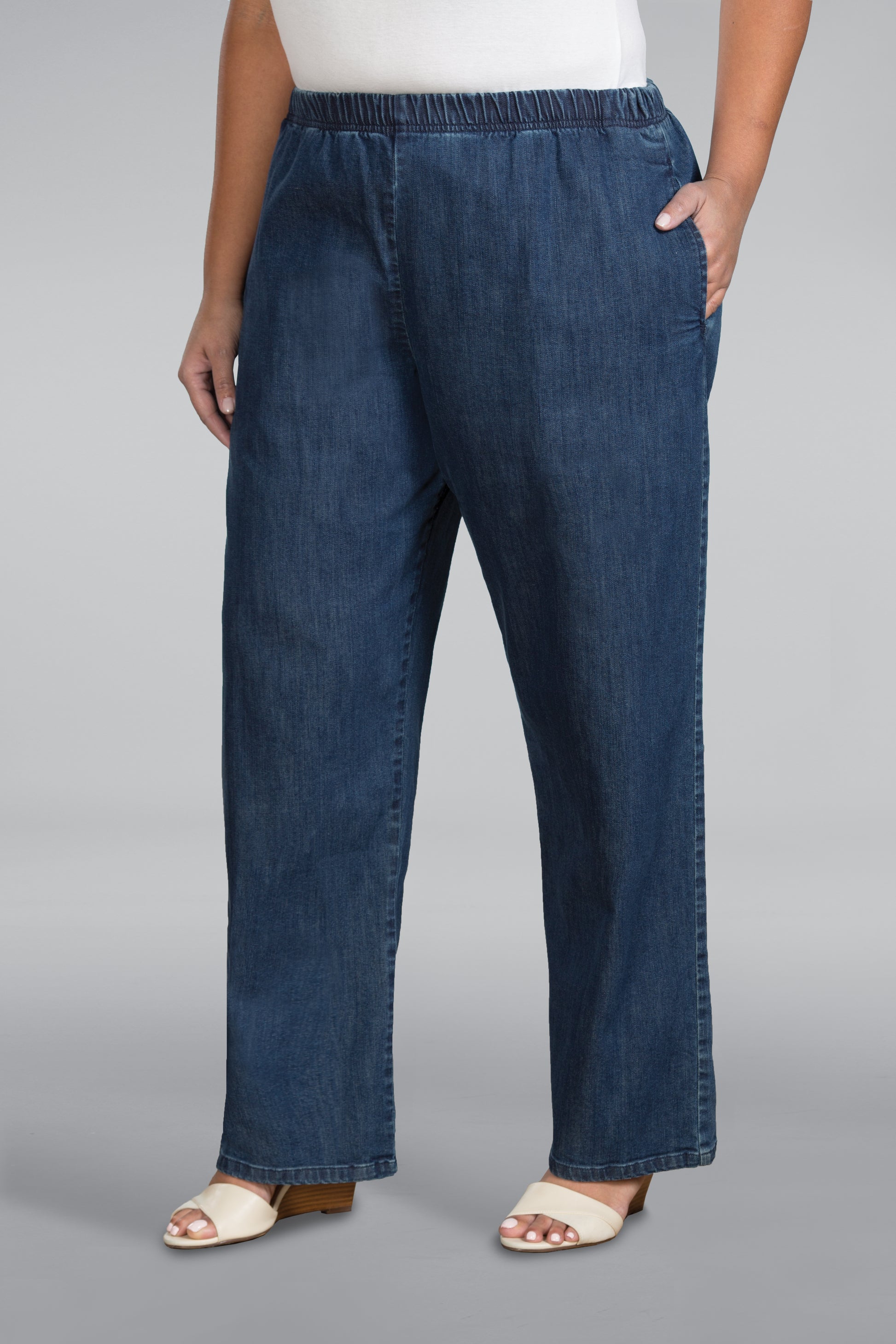 Our Wide Leg Lightweight Denim are made of a soft denim fabric in a modern wash with a touch of spandex.